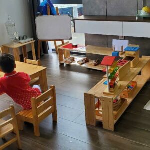 FUJI Montessori Nha Trang được tổ chức theo đúng tinh thần Montessori: không gian mở, ánh sáng tự nhiên, vật liệu thân thiện. Lớp học rộng rãi, bố trí khoa học để trẻ di chuyển tự do, lựa chọn hoạt động phù hợp nhịp phát triển cá nhân. Trường trang bị đầy đủ giáo cụ Montessori chuẩn cho các lĩnh vực: Thực hành cuộc sống, Cảm quan, Toán học, Ngôn ngữ và Văn hóa.