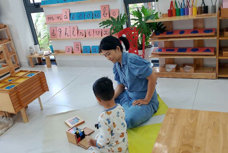 Lớp học trộn độ tuổi tạo điều kiện để trẻ lớn làm “người dẫn dắt”, trẻ nhỏ học hỏi qua quan sát – một cơ chế học tự nhiên và hiệu quả. Giáo viên đóng vai trò người quan sát – người hướng dẫn, can thiệp đúng lúc để khơi mở tiềm năng, thay vì áp đặt hay thúc ép. Trẻ hình thành tính độc lập, khả năng tập trung, kỷ luật nội tâm và sự tự tin, những năng lực cốt lõi cho hành trình học tập dài hạn.