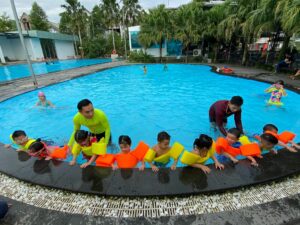 Ngoài ra, trường còn tổ chức các lớp năng khiếu phục vụ cho trẻ: dạy tiếng Anh, dạy thể dục nhịp điệu Aerobic, dạy bơi, …Tổ chức cho các bé đi tham quan, dã ngoại và tập làm nội trợ, chăm sóc vườn rau… để phát triển kĩ năng sống