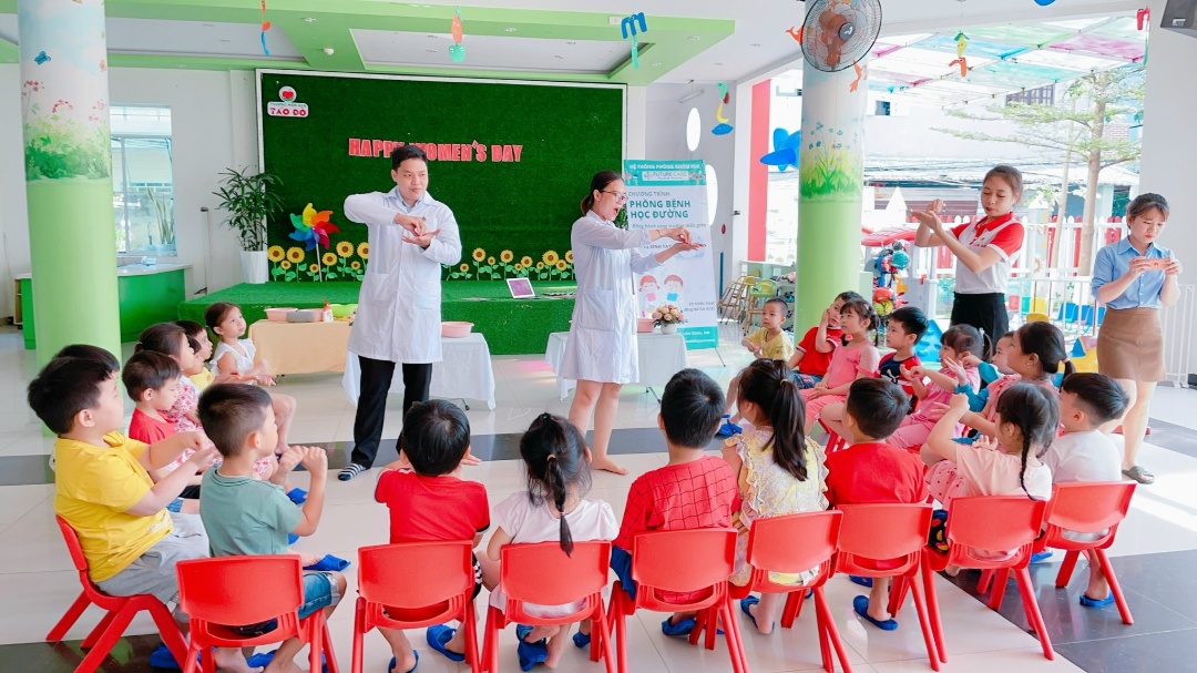 – Có cô y tế chuyên chăm sóc sức khỏe riêng cho các con.