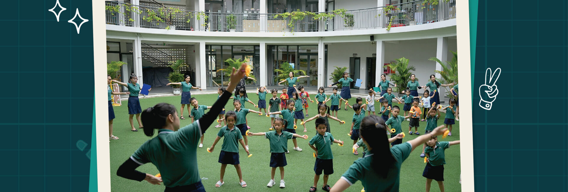 🎨 Học mà chơi, chơi mà học: Tại Hugo House, các bé được đắm mình trong không gian học tập thoáng đãng, với diện tích lên tới 4000m2. Mỗi lớp học rộng từ 50-70m2, và bên ngoài là sân vườn rộng 600-800m2 với bể bơi, vườn rau, khu chơi đất, cát và nước – nơi các bé có thể thỏa sức khám phá thế giới xung quanh mình.